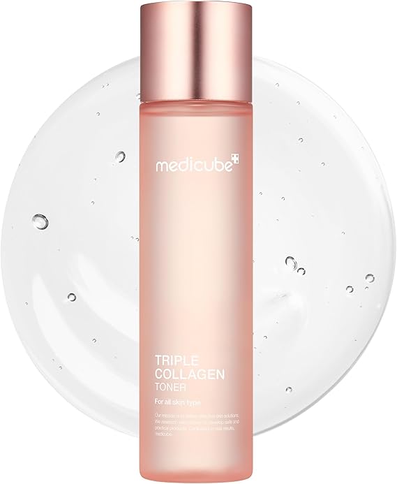 Nourish your skin with medicube's Triple Collagen Toner. Infused with Hydrolyzed, Atelo, and Soluble Collagen, this fast-absorbing formula deeply hydrates for a radiant, supple complexion. Improve skin elasticity and achieve a dewy finish with the power of triple collagen complex. Say hello to plump, revitalized skin.